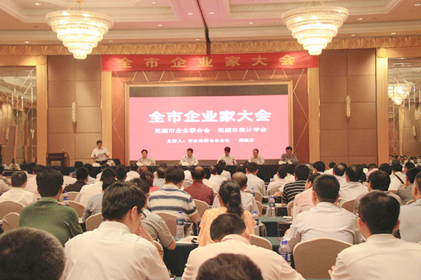 ? ? 2014年6月23日下午,由蕪湖市企業(yè)聯(lián)合會、蕪湖市統(tǒng)計(jì)學(xué)會聯(lián)合舉辦的蕪湖市全市企業(yè)家大會在僑鴻酒店隆重舉行。市委書記、市人大主任高登榜同志、各市政府市直機(jī)關(guān)、各縣、區(qū)主要負(fù)責(zé)同志、全市企業(yè)家代表共300余人出席了此次大會。